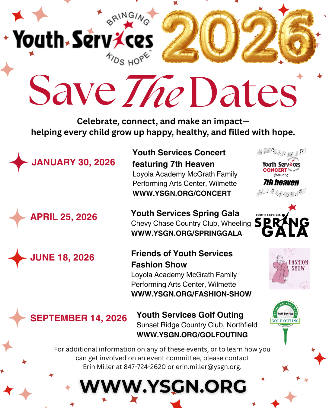 Youth Services hosts fundraising and community events throughout the year to bring together our community and support our critical mission. Join us at one of our three fun and popular standard fundraising events each year: Annual Spring Gala, Golf Outing and the Youth Services Concert. Interested in getting more involved? Contact Erin Miller at erin.miller@ysgn.org.