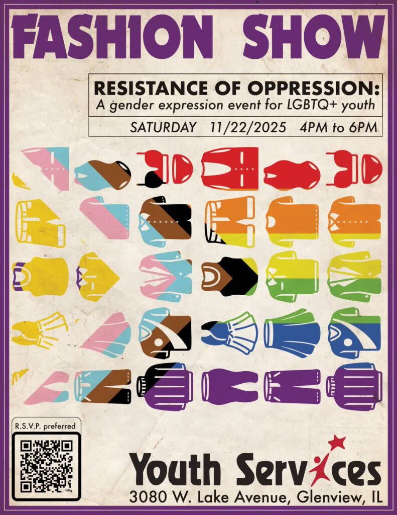 Saturday, November 22nd from 4:00-6:00PM High school youth are invited to join Youth Services Youth Leaders for a fashion show and gender closet. RSVP here!