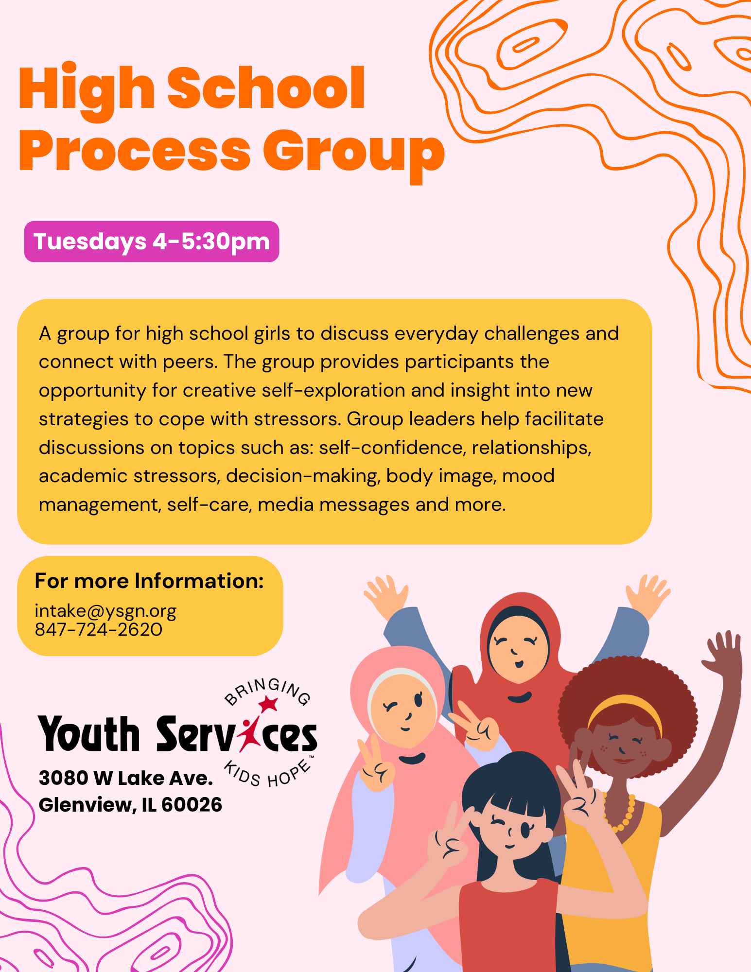 Youth Services’ process groups are designed to provide a safe and supportive space for participants to navigate the everyday challenges and stressors in their lives. Group leaders facilitate discussions on topics such as self-confidence, relationships, academic stress, decision-making, body image, mood management, self-care, media messages, and more. These groups offer participants opportunities for creative self-exploration and provide insight into new strategies for coping with stress. We offer two process groups; one for girls in grades 6-8 and one for girls in grades 9-12.